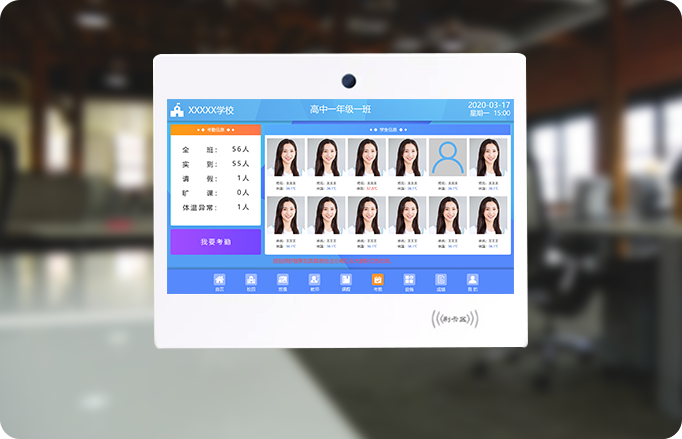 到了考勤時(shí)間點(diǎn),電子班牌自動(dòng)開(kāi)啟攝像頭進(jìn)行人臉識(shí)別工作,記錄全班考勤人數(shù),